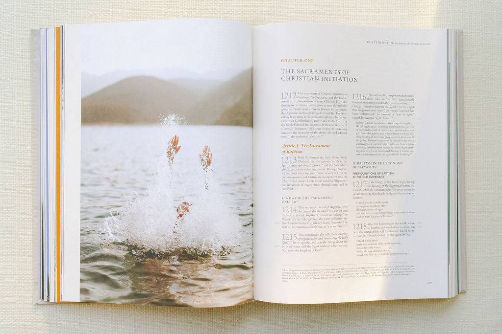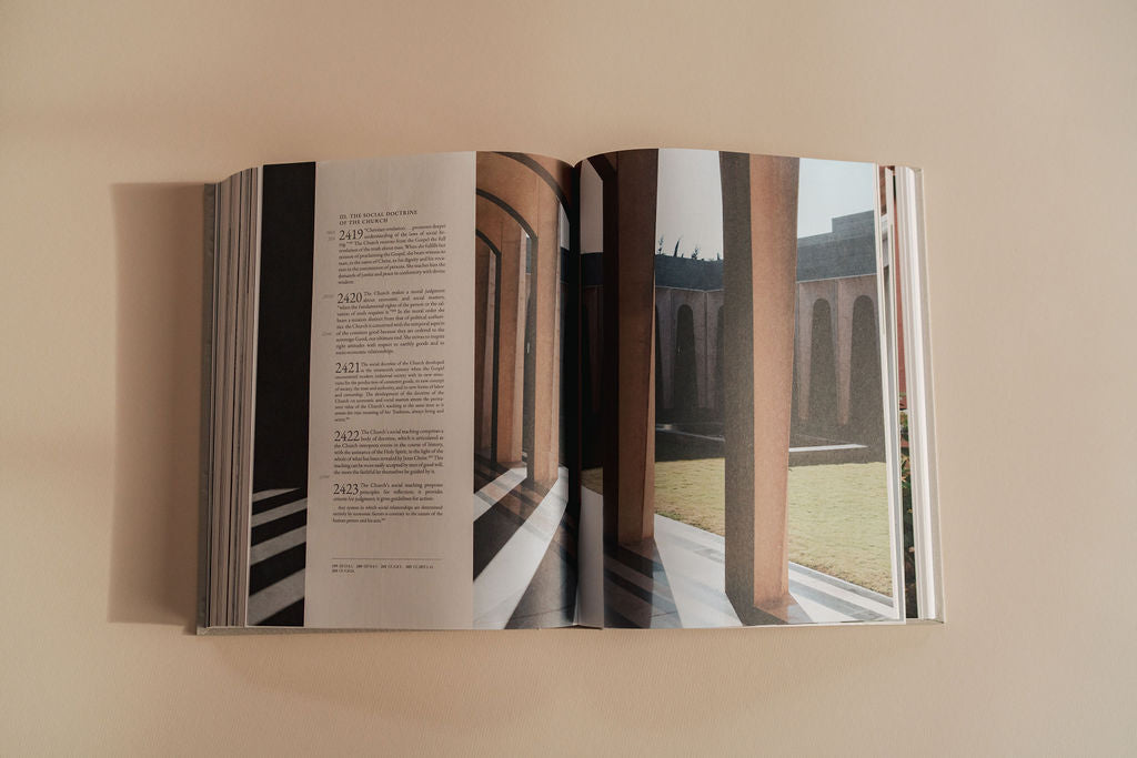 This Catechism was created as a coffee-table style book by a team of Catholic artists and designers to reflect the beauty of humanity in all aspects of life. We want readers to discover God not only through the text of the CCC, but also in the shapes, colors, textures, and vistas that echo His presence.